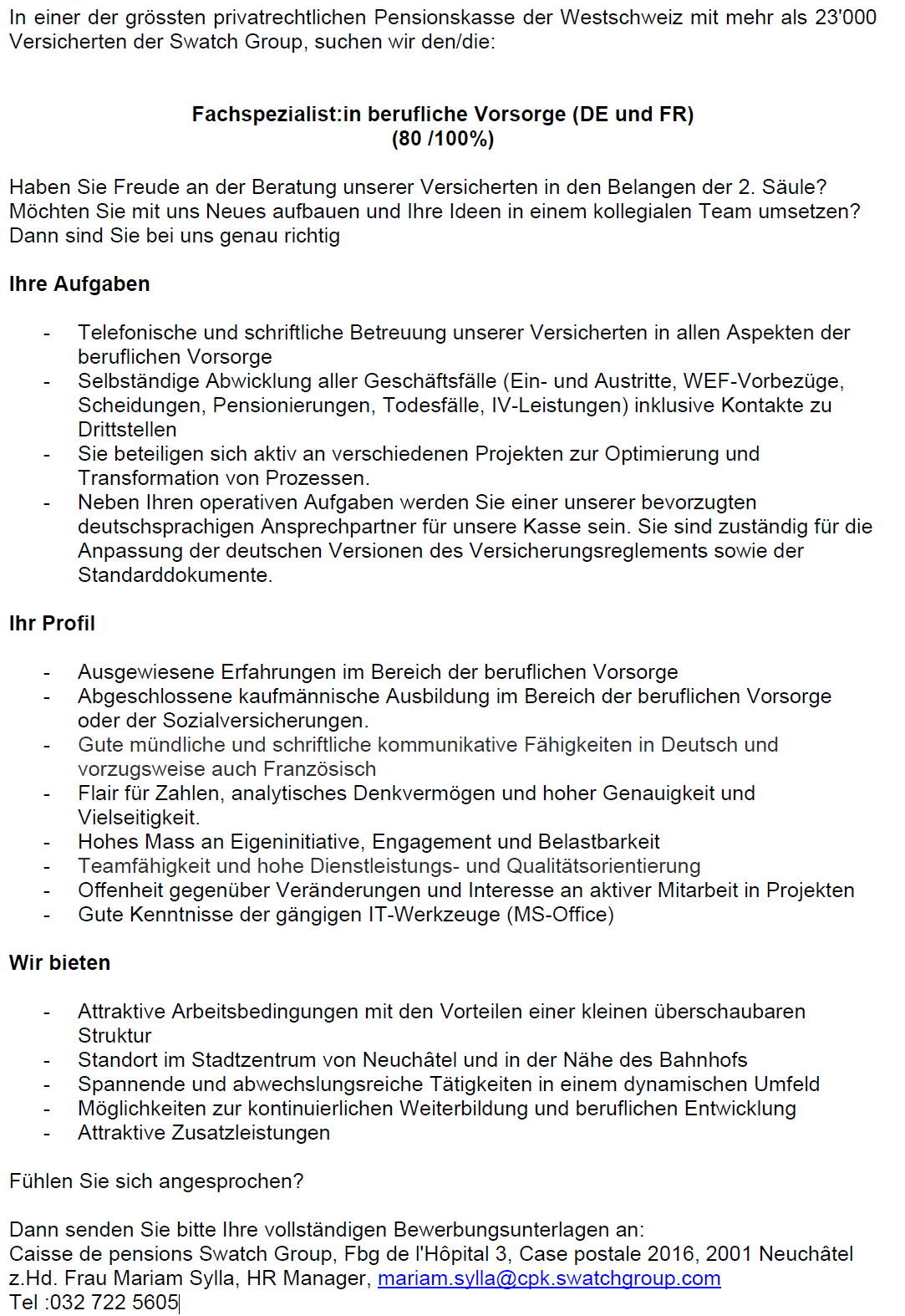 Jobs in unserer Pensionskasse
