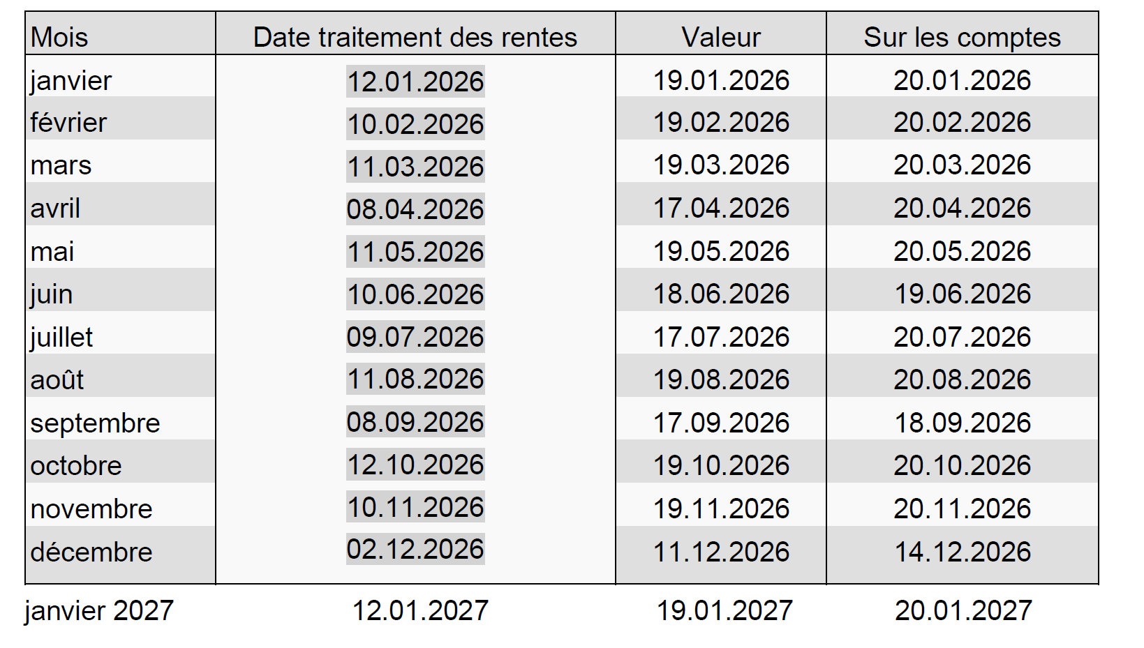 Echéancier des rentes